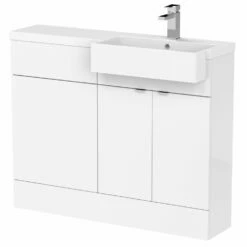 Hudson Reed Fusion RH Combination Unit With Round Semi Recessed Basin 1100mm Wide – Gloss White