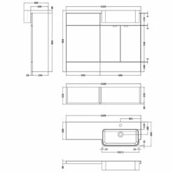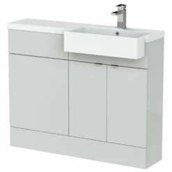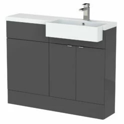 Hudson Reed Fusion RH Combination Unit With Square Semi Recessed Basin 1100mm Wide – Gloss Grey