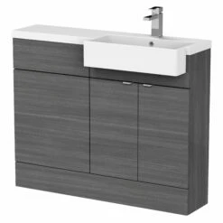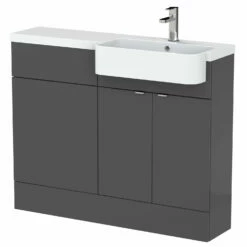 Hudson Reed Fusion RH Combination Unit With Round Semi Recessed Basin 1100mm Wide – Gloss Grey