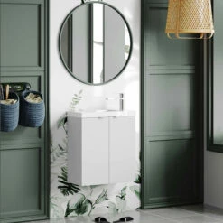 Hudson Reed Fusion Wall Hung 2-Door Vanity Unit With Ceramic Basin 500mm Wide – Gloss White