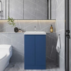 Hudson Reed Urban Floor Standing 2-Door Vanity Unit With Basin 2 Satin Blue – 500mm Wide