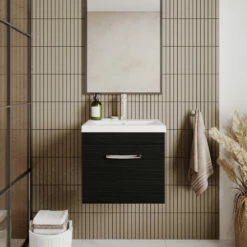 Nuie Athena Wall Hung 1-Drawer Vanity Unit With Basin-4 500mm Wide – Charcoal Black