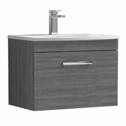 Nuie Athena Wall Hung 1-Drawer Vanity Unit With Basin-4 600mm Wide – Anthracite Woodgrain