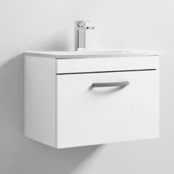 Nuie Athena Wall Hung 1-Drawer Vanity Unit With Basin-2 500mm Wide – Gloss Grey Mist