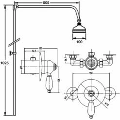 Nuie Edwardian Round Manual Exposed Shower Valve With Rigid Riser Kit – Chrome