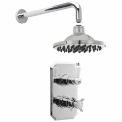 Nuie Edwardian Twin Square Thermostatic Concealed Shower Valve With Fixed Head And Arm – Chrome