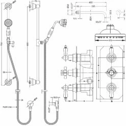Nuie Edwardian Twin Square Thermostatic Concealed Shower Valve With Slider Rail Kit – Chrome