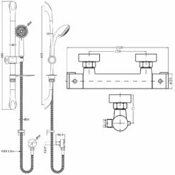 Nuie Minimalist Thermostatic Bar Shower Valve With Classic Multi Function Slider Rail Kit – Chrome