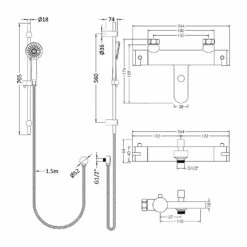 Hudson Reed Binsey Thermostatic Bath Shower Mixer With Water Saving Slider Rail Kit – Chrome