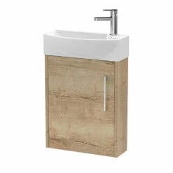Hudson Reed Juno Compact LH Wall Hung Vanity Unit And Basin 440mm Wide – Autumn Oak