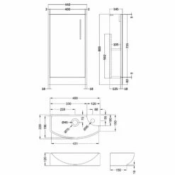 Hudson Reed Juno Compact LH Floor Standing Vanity Unit And Basin 440mm Wide – Graphite Grey