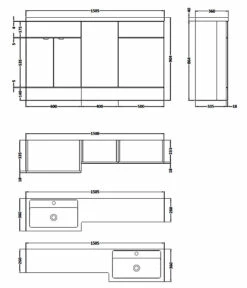 Hudson Reed Fusion LH Combination Unit With 300mm Base Unit X 3 – 1500mm Wide – Gloss Grey