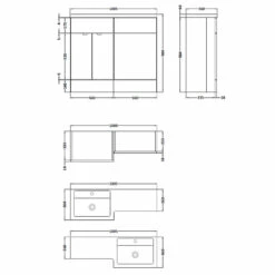 Hudson Reed Fusion LH Combination Unit With 600mm WC Unit – 1200mm Wide – Charcoal Black Woodgrain