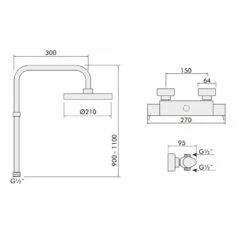 Inta Puro Deluxe Thermostatic Bar Mixer Shower With Shower Kit + Fixed Head