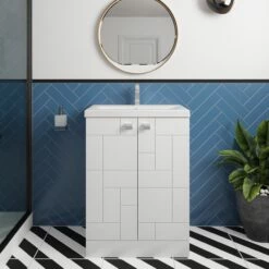 Nuie Blocks Floor Standing 2-Door Vanity Unit With Basin-1 600mm Wide – Satin White