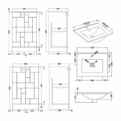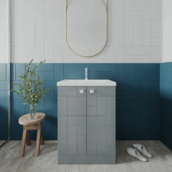 Nuie Blocks Floor Standing 2-Door Vanity Unit With Basin-2 500mm Wide – Satin Grey