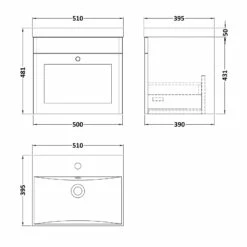 Nuie Classique Wall Hung 1-Drawer Vanity Unit With Basin-2 500mm Wide – Satin Grey