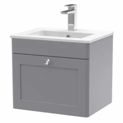 Nuie Classique Wall Hung 1-Drawer Vanity Unit With Basin-3 500mm Wide – Satin Grey