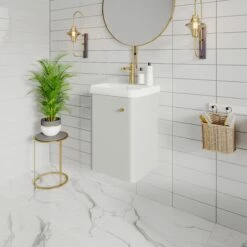 Nuie Core Wall Hung 1-Door Vanity Unit With Thin Edge Basin 400mm Wide – Gloss Grey Mist