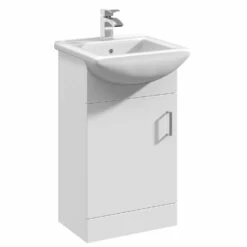 Nuie Mayford Floor Standing 1-Door Vanity Unit With Basin 400mm Wide – Gloss White