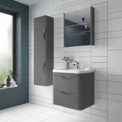 Nuie Parade Tall Wall Mounted Cupboard Unit 350mm Wide – Gloss Grey