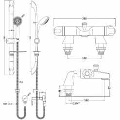 Nuie Reef Thermostatic Bath Shower Mixer With Classic Multi Function Slider Rail Kit – Chrome