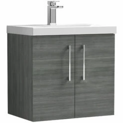 Nuie Arno Wall Hung 2-Door Vanity Unit With Basin-3 600mm Wide – Anthracite Woodgrain