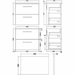 Nuie Arno Wall Hung 2-Drawer Vanity Unit With Bellato Grey Worktop 600mm Wide – Gloss White