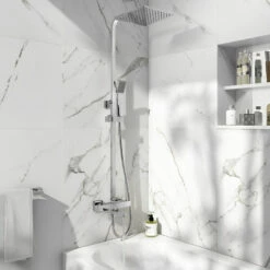 Orbit Squaro Thermostatic Rigid Riser Shower Kit With Bath Filler – Chrome