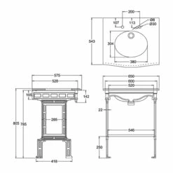 Burlington Georgian Marble Basin With Regal Chrome Wash Stand 650mm Wide 3 Tap Hole