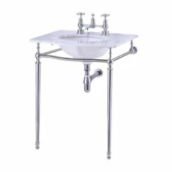 Burlington Georgian Marble Basin With Chrome Wash Stand 650mm Wide 3 Tap Hole