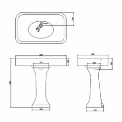 Burlington Arcade Basin 600mm Wide With Full Pedestal – 3 Tap Hole