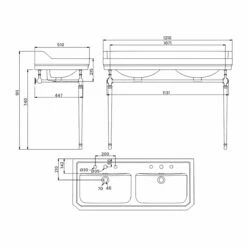 Burlington Edwardian Double Basin 1200mm Wide And Wash Stand – 3 Tap Hole
