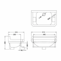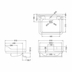 Burlington Edwardian Rectangular Cloakroom Basin 510mm Wide 2 Tap Hole