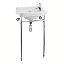 Burlington Edwardian Rectangular Basin With Regal Chrome Wash Stand 515mm Wide LH Tap Hole