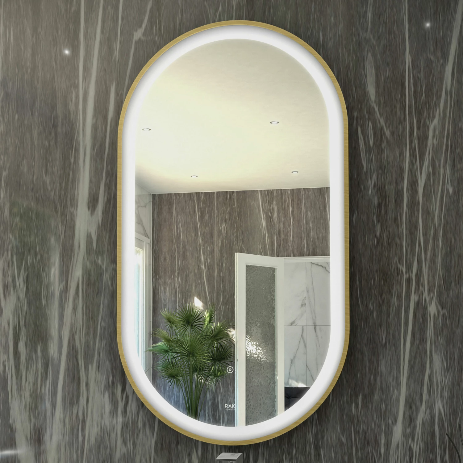 RAK Art Oval LED Illuminated Bathroom Mirror With Demister Pad 1000mm H X 450mm W - Brushed Gold -HEATANDPLUMB Sales rak ceramics art bathroom mirror rakartovbg5001