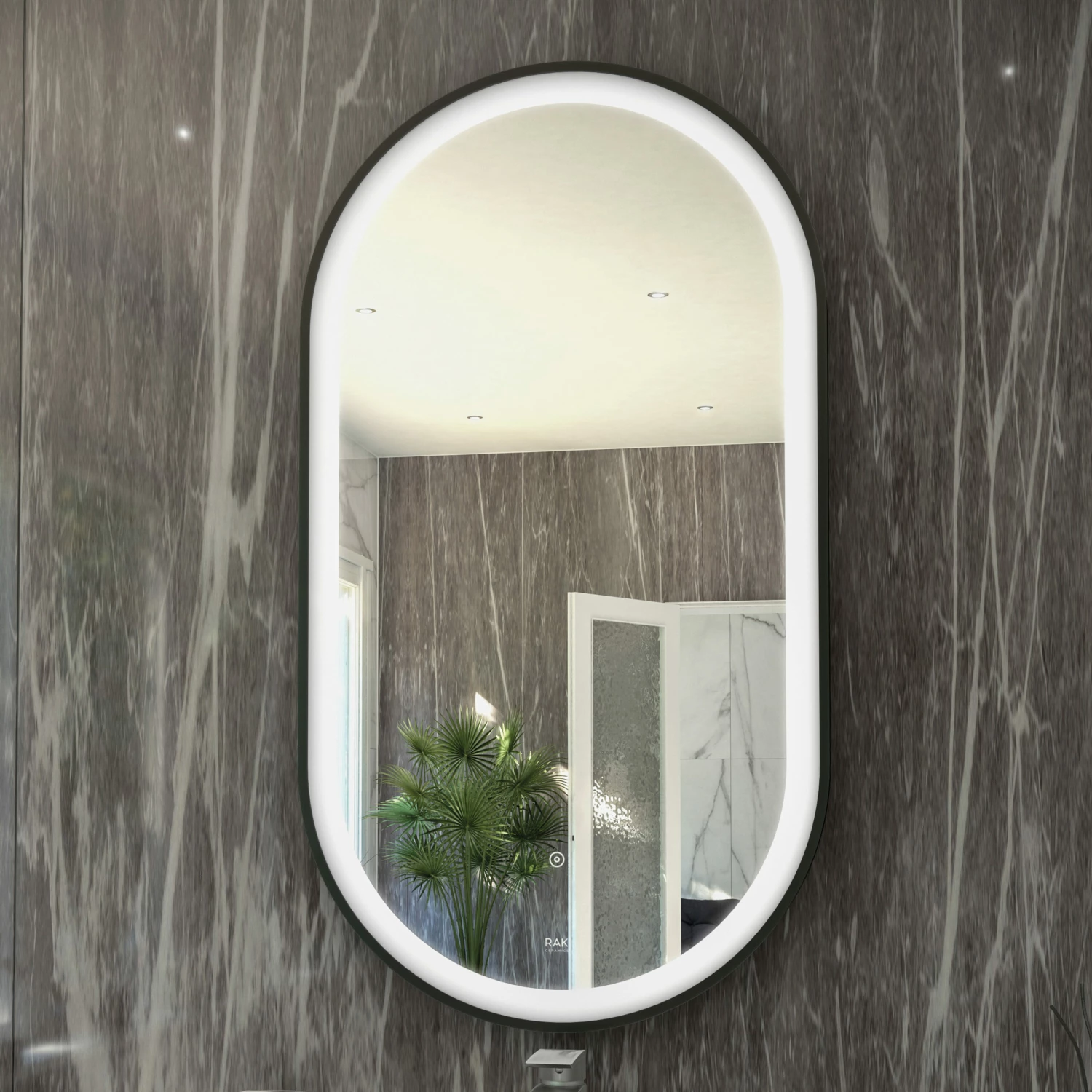 RAK Art Oval LED Illuminated Bathroom Mirror With Demister Pad 1000mm H X 550mm W - Matt Black -HEATANDPLUMB Sales rak ceramics art bathroom mirror rakartovmb5002