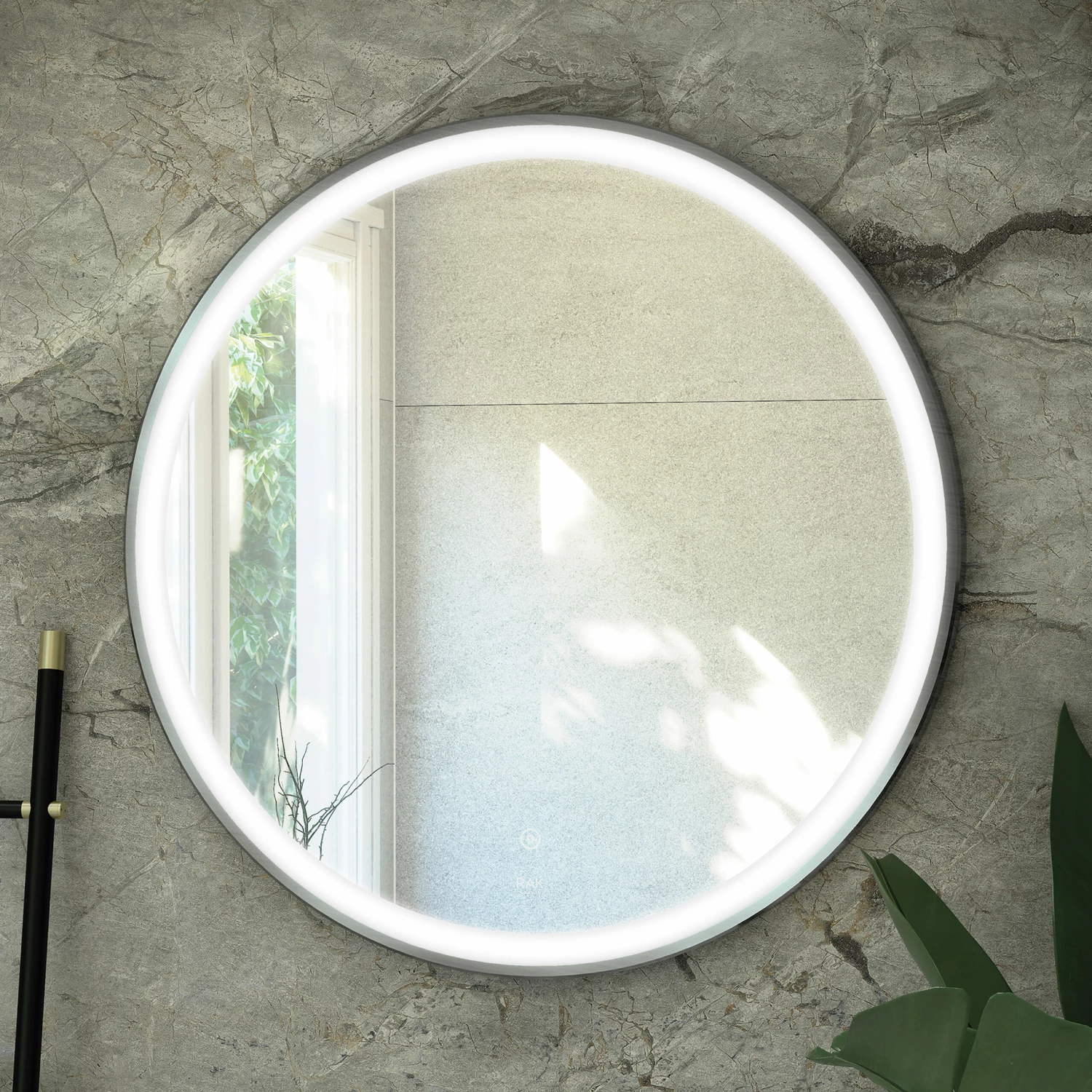 RAK Art Round LED Illuminated Bathroom Mirror With Demister Pad 800mm Diameter - Brushed Nickel