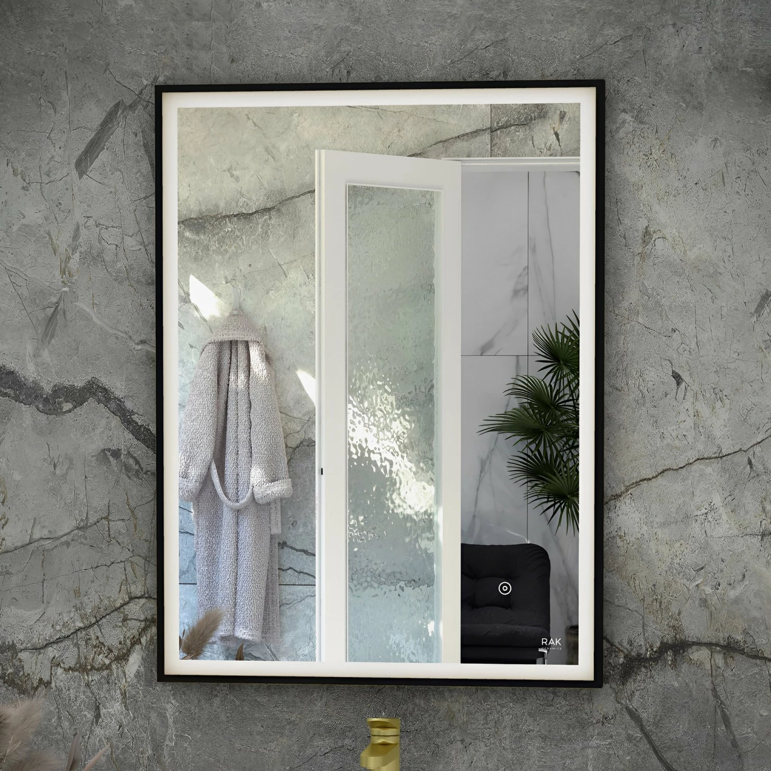 RAK Art Square LED Bathroom Mirror With Demister Pad 800mm H X 600mm W - Matt Black -HEATANDPLUMB Sales rak ceramics art bathroom mirror rakartsqmb5001 2 1