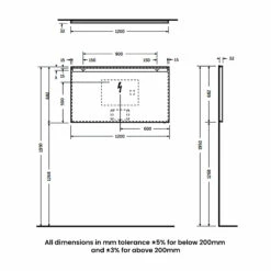 RAK Joy Wall Hung Bathroom Mirror With LED Mirror 680mm H X 1200mm W - Image 2