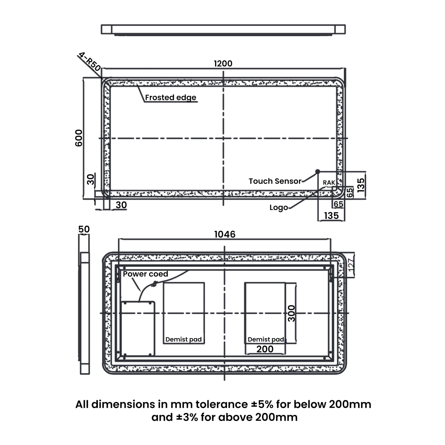 • Supplied with touch sensor switch and demister pad
