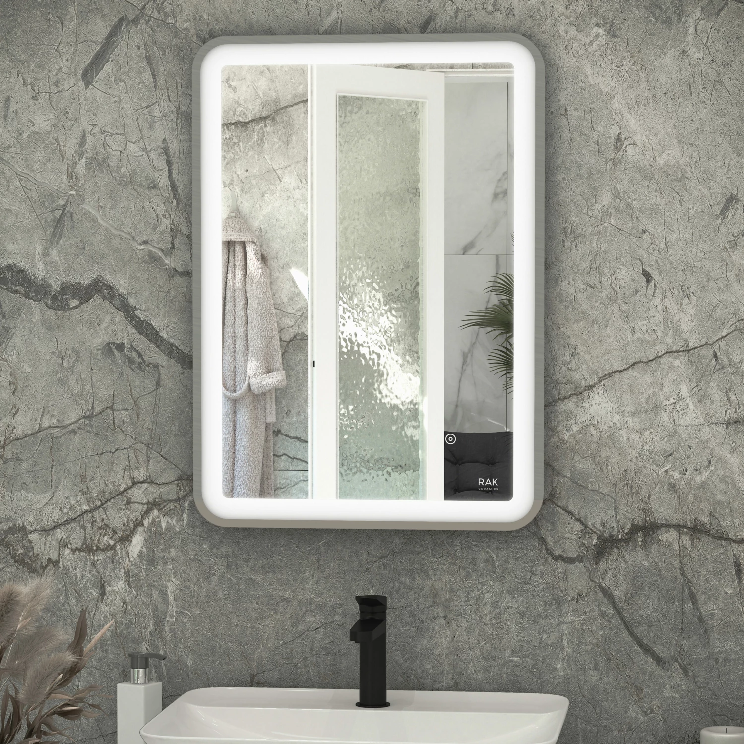 RAK Picture Soft LED Illuminated Bathroom Mirror With Demister Pad 700mm H X 500mm W – Brushed Nickel