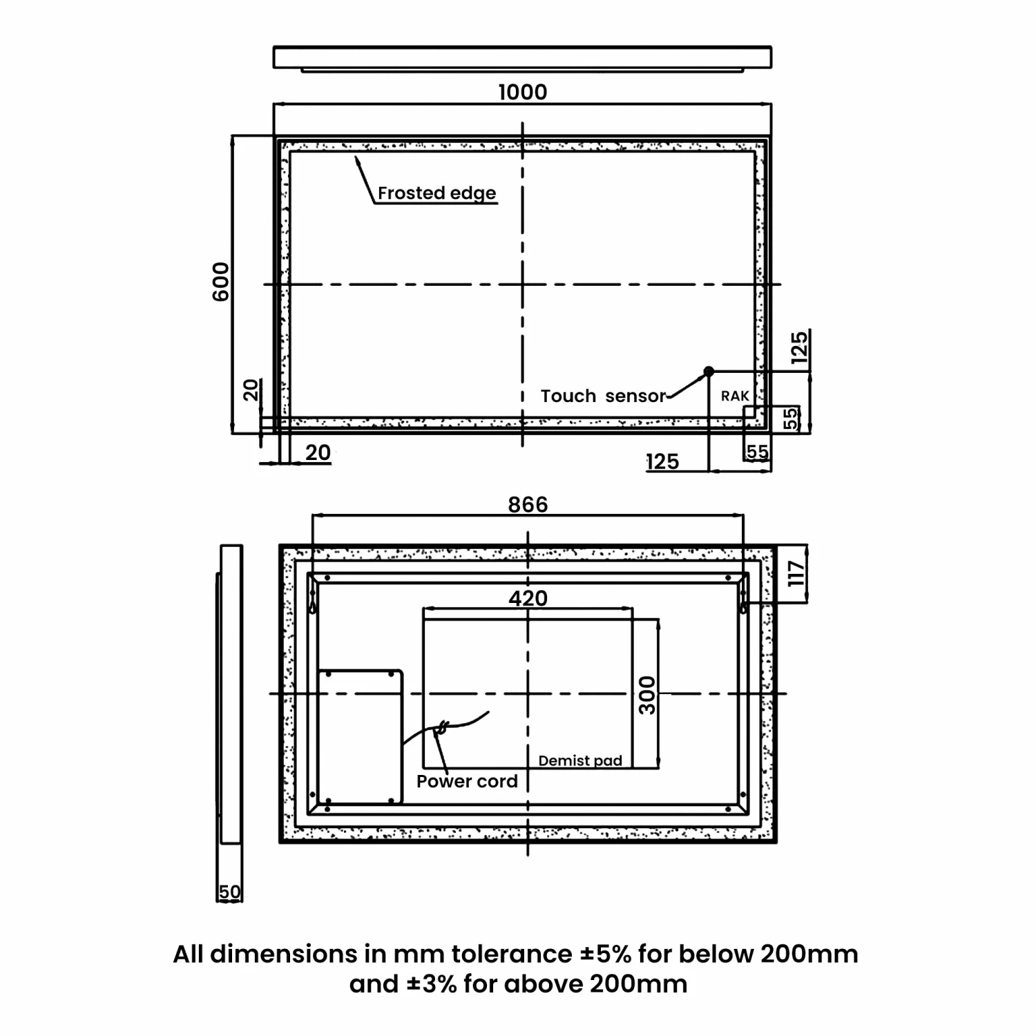 Be the first to review “RAK Picture Square LED Illuminated Bathroom Mirror With Demister Pad 600mm H X 1000mm W – Matt Black” Cancel reply