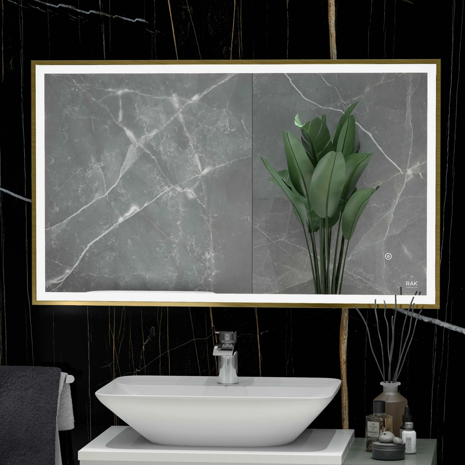 RAK Art Soft LED Illuminated Bathroom Mirror With Demister Pad 800mm H X 600mm W – Brushed Gold