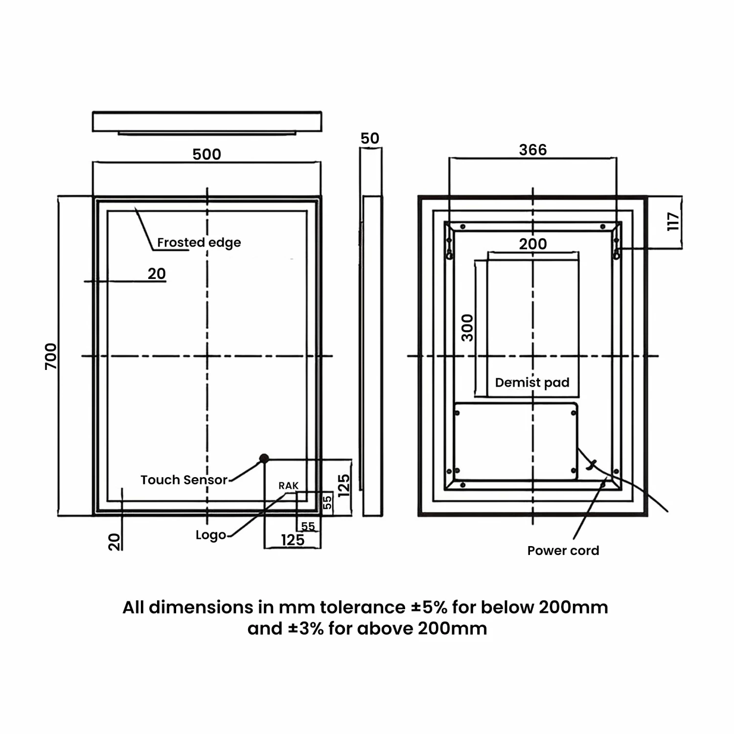 Be the first to review “RAK Picture Square LED Illuminated Bathroom Mirror With Demister Pad 700mm H X 500mm W – Chrome” Cancel reply