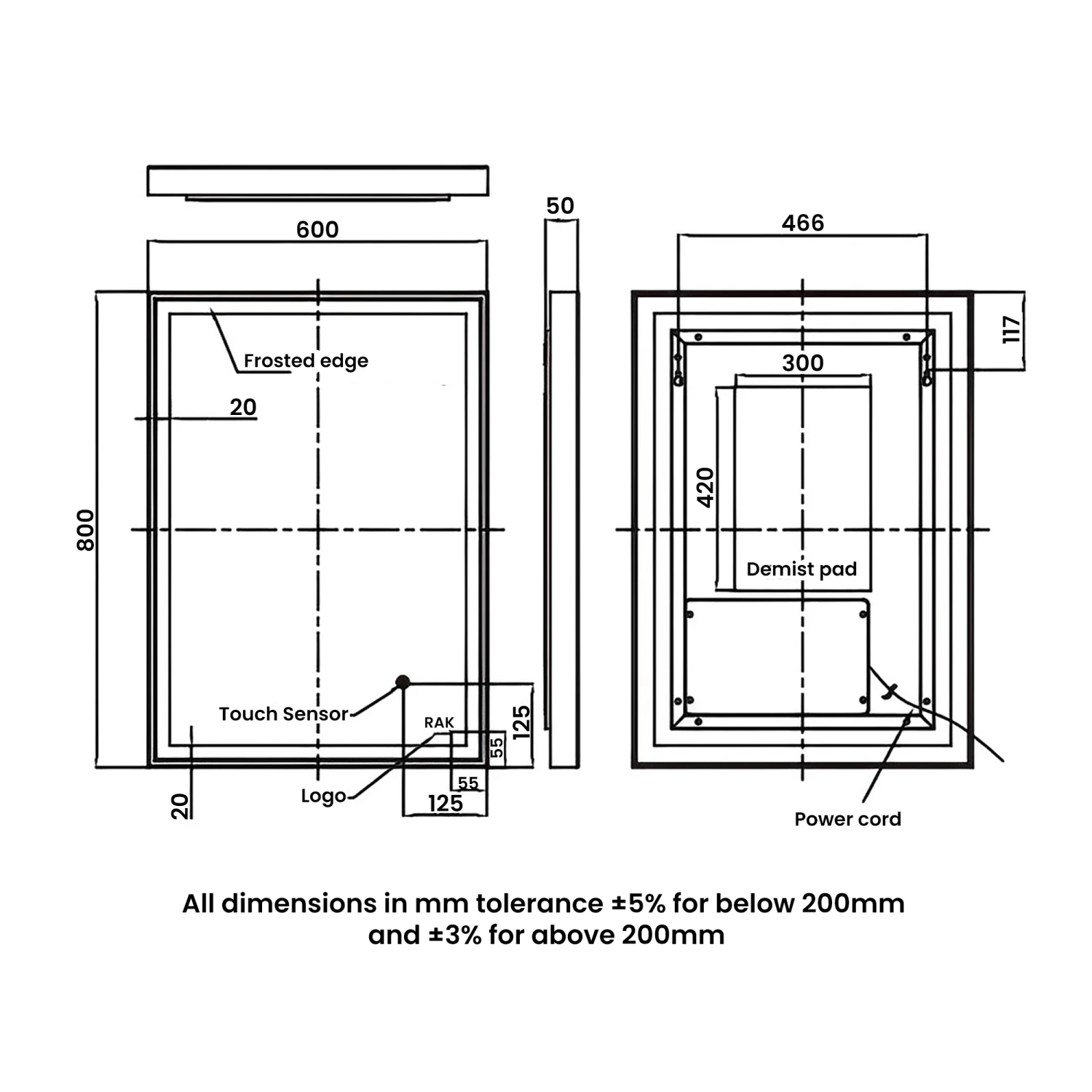 • Supplied with touch sensor switch and demister pad