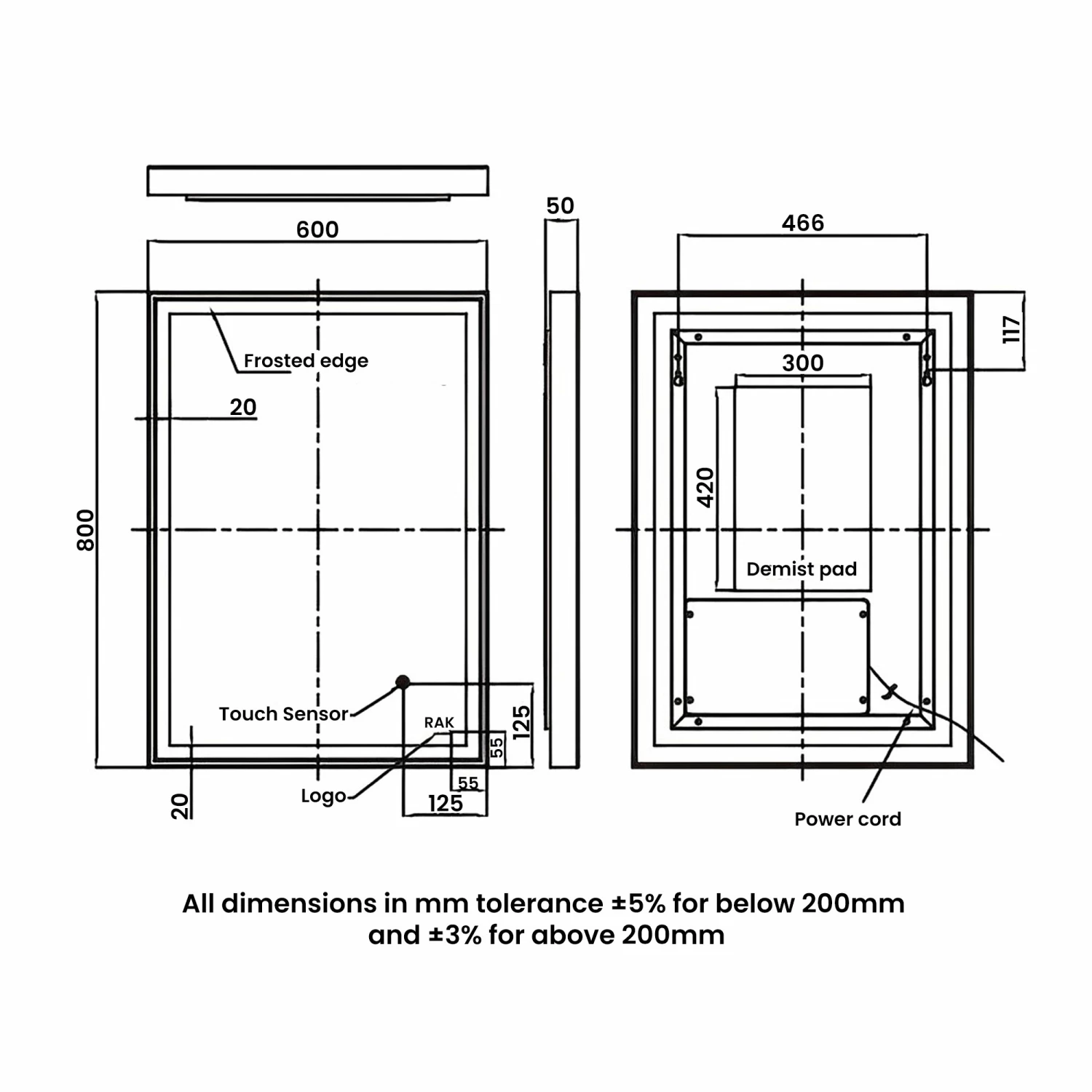 Be the first to review “RAK Picture Square LED Illuminated Bathroom Mirror With Demister Pad 800mm H X 600mm W – Chrome” Cancel reply