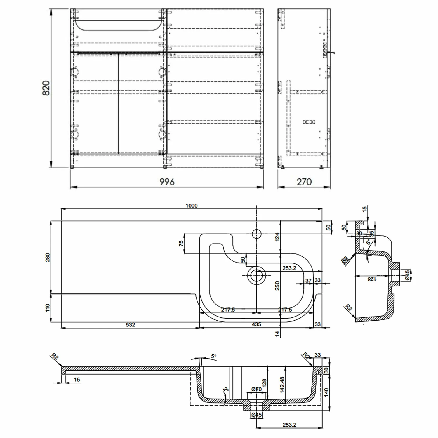 - Left-hand design suits your bathroom’s shape