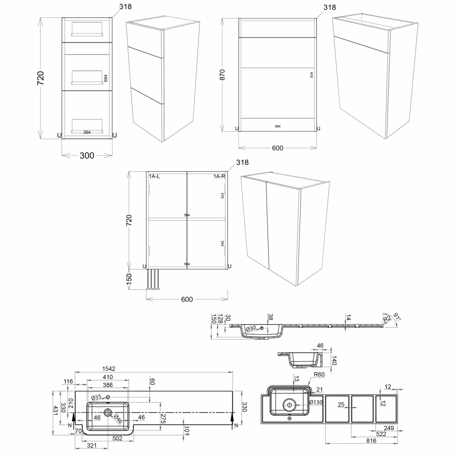 - Durable 18mm cabinets, sides, back and doors