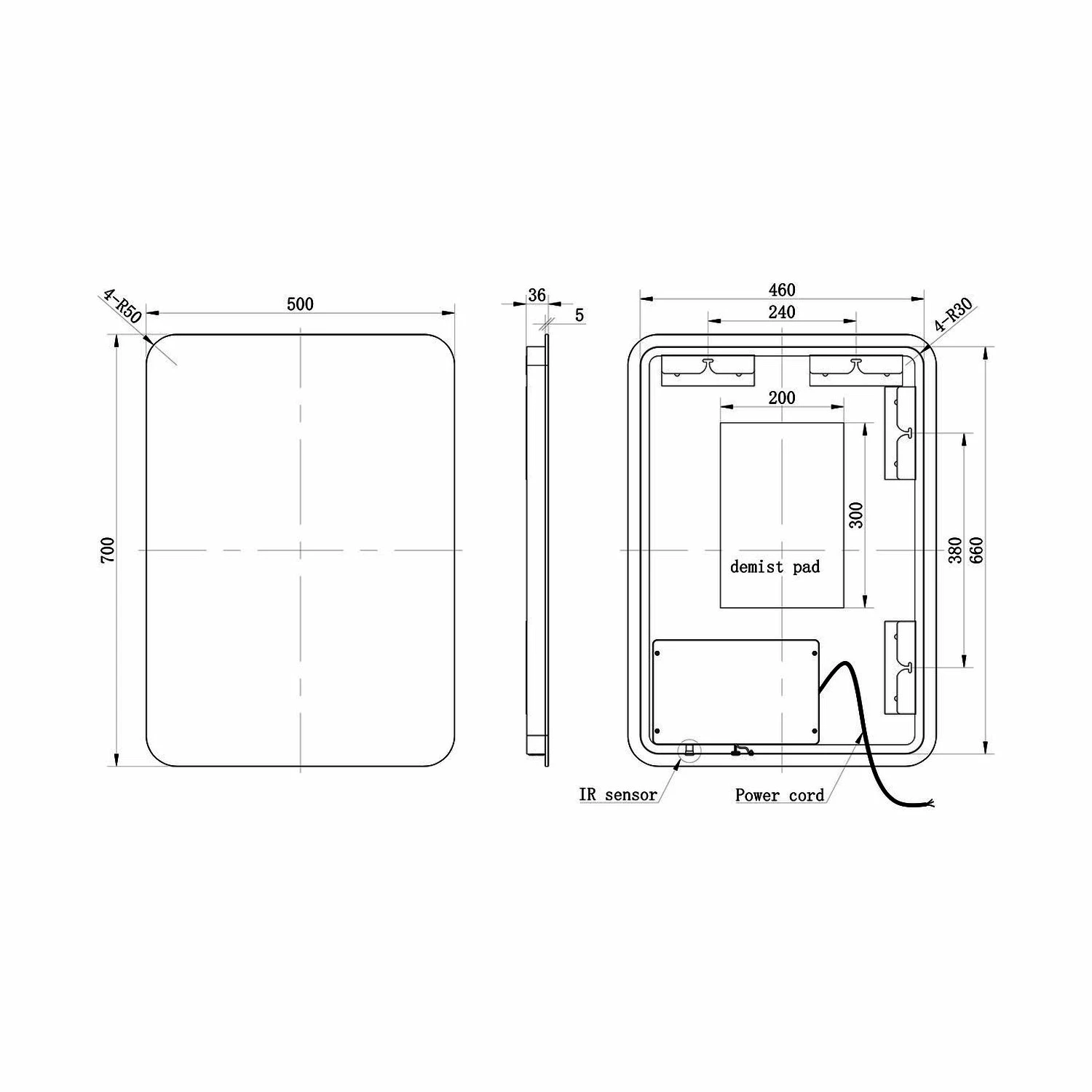 - Infrared sensor – Note that the sensor will not function if positioned above anything reflective